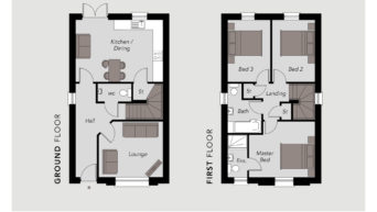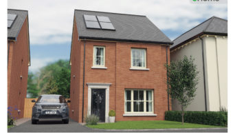 - Exterior elevation finished with brick, render or stone effect cladding depending on the house type